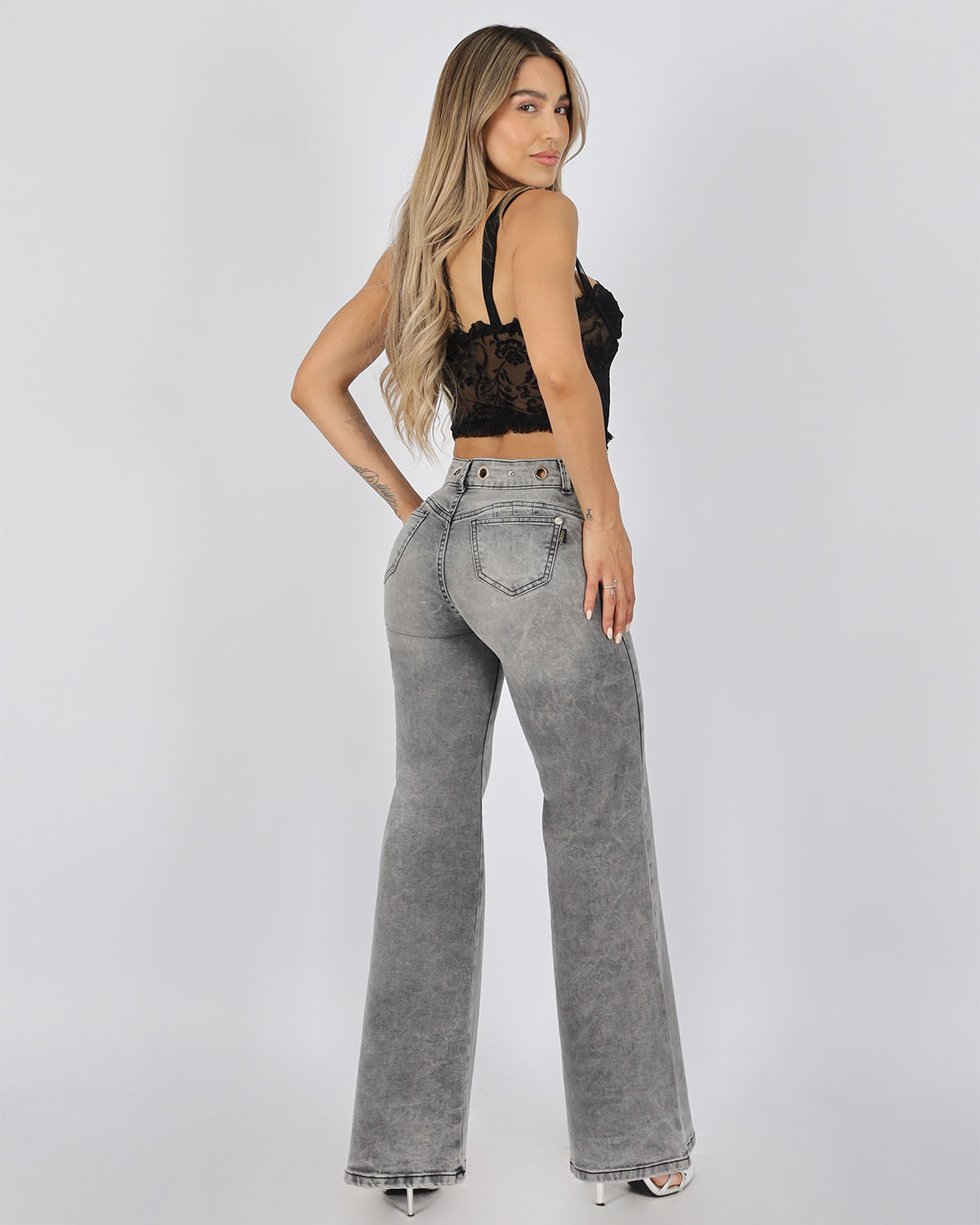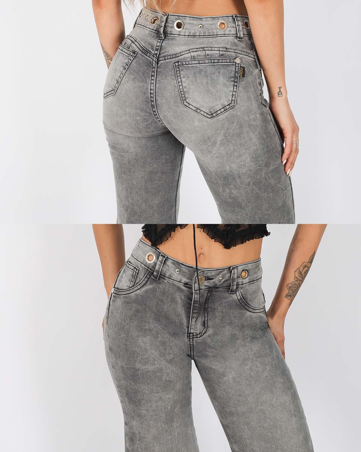 Nuestro jeans Marsella eleva cualquier look: limpio, audaz y listo para destacarBlack + pretina con Ojetillos y tachas = outfit que no pasa desapercibido.